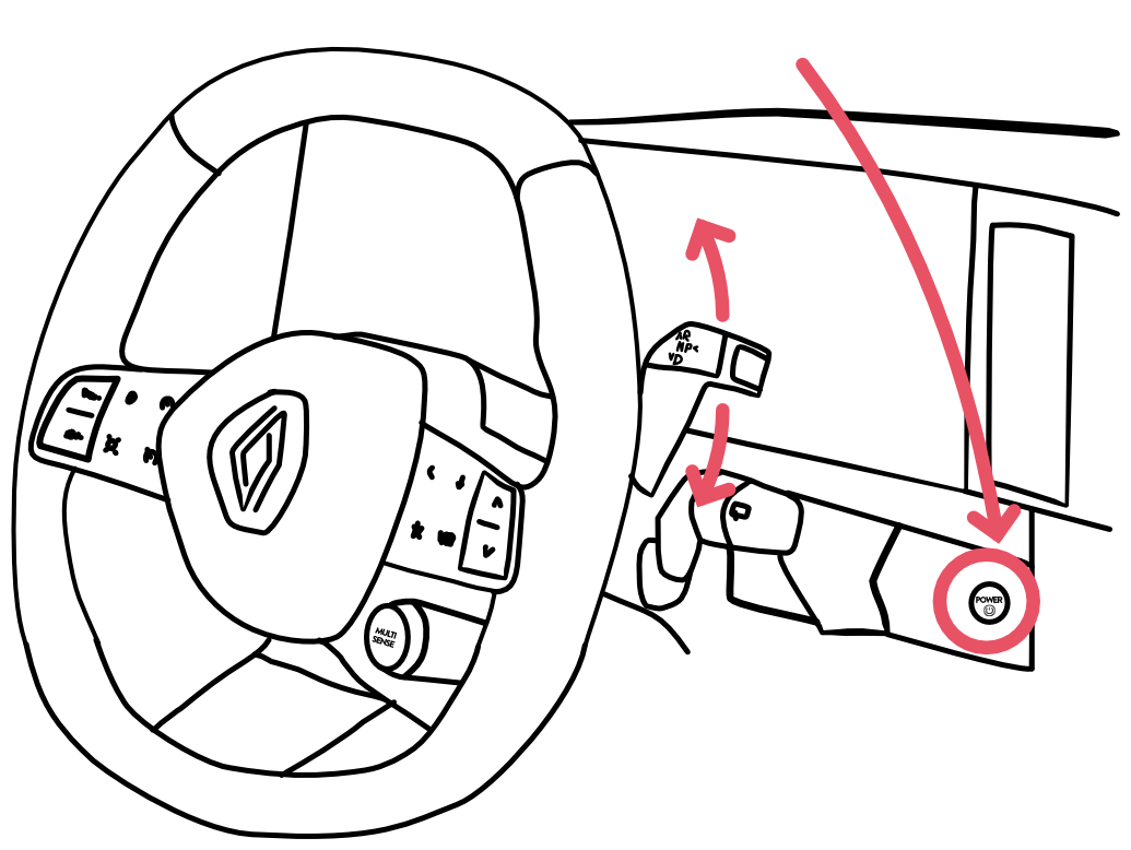 - To start the vehicle, press firmly on the brake and push the start button (see image), located to the right of the steering wheel.