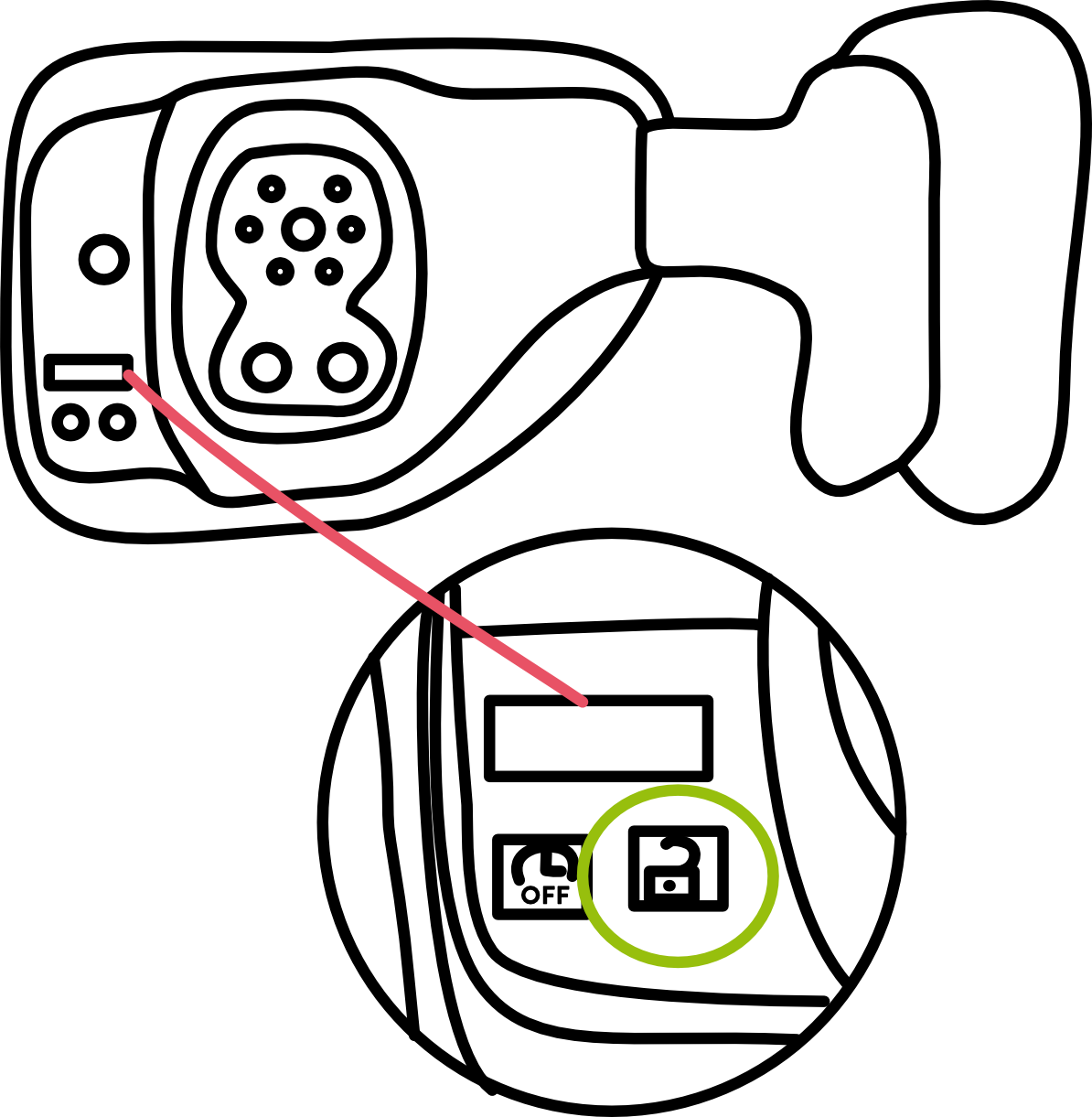- The vehicle locks the charging cable after plugging it in. Check the lock by gently pulling on the handle of the charging cable.